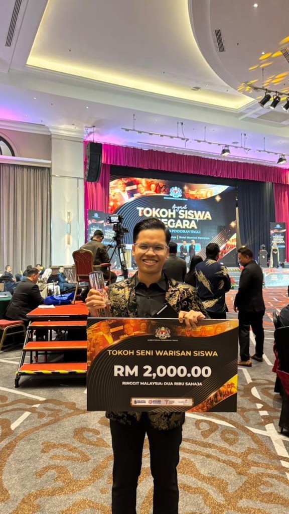 Hasil usaha keras dan tidak mengenal erti putus asa akhirnya membawa kejayaan besar apabila beliau dinobatkan sebagai penerima Anugerah Tokoh Seni Warisan Siswa (Anugerah Tokoh Siswa Negara-ATSN) 2025, merupakan sebuah anugerah berprestij di bawah Kementerian Pendidikan Tinggi (KPT) yang menyoroti bakat dan sumbangan pelajar dalam bidang seni. ATSN 2025 telah menerima sebanyak 246 pencalonan dari semua IPT dan menyaksikan seramai 75 calon telah berjaya ke peringkat akhir bagi merebut 17 anugerah yang dipertandingkan yang berlangsung di Hotel Marriott Putrajaya pada 1 Oktober 2025 baru-baru ini.