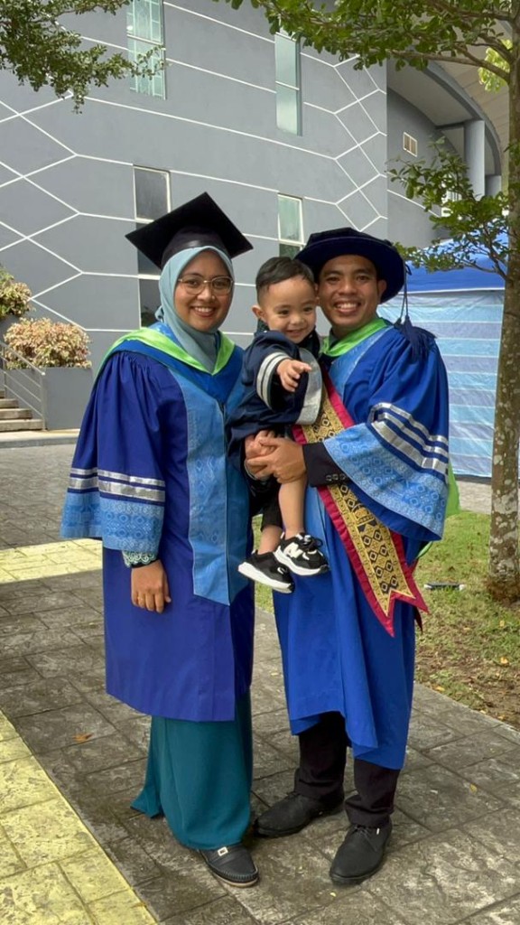 Pasangan ini melalui banyak detik akademik Bersama daripada hari pertunangan, perkahwinan sederhana pada tahun 2021 hinggalah pembentangan cadangan penyelidikan (proposal defense) yang berlangsung pada tarikh yang sama.