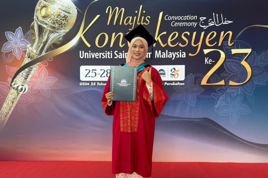 NILAI – Keteguhan disiplin dan didikan keluarga pendidik menjadi asas kejayaan Zulfa Auni Mansur, 23, graduan Ijazah Sarjana Muda Matematik Kewangan dari Fakulti Sains dan Teknologi (FST), yang berjaya menamatkan pengajian meskipun turut menggalas tanggungjawab sebagai atlet dan mahasiswa aktif ko-kurikulum.