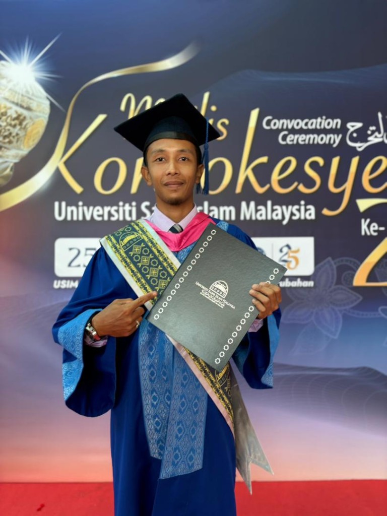 “Saya menekankan untuk graduan, kalau boleh kita pelbagaikan dan asah soft skill bukan sekadar akademik semata untuk membina jati diri kita supaya menjadi mahasiswa yang seimbang dari pelbagai aspek. Kerana belajar itu ‘اطْلُبُوا العِلمَ مِنَ المَهدِ إِلى اللّحْدِ’ Carilah ilmu daripada buaian hingga ke liang lahad,” pesannya.