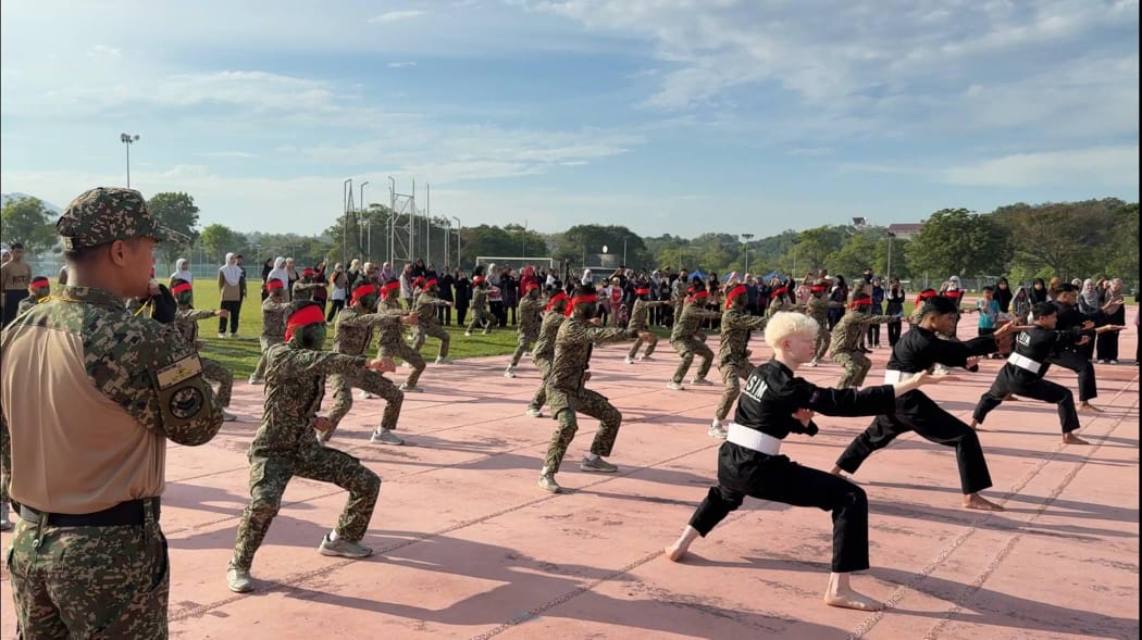 NILAI – Seramai 41 peserta terdiri daripada 30 Pegawai Kadet dan 5 jurulatih Pasukan Latihan Pegawai Simpanan (PALAPES) Universiti Sains Islam Malaysia (USIM) bersama 6 pelajar Persatuan Seni Silat USIM telah menampilkan Persembahan Gabungan Tempur Tanpa Senjata (TTS) dan Seni Silat sempena Hari Sukan Negara 2025 Peringkat Daerah Seremban yang berlangsung di Kompleks Sukan Tunku Najihah, USIM pada 11 Oktober 2025.