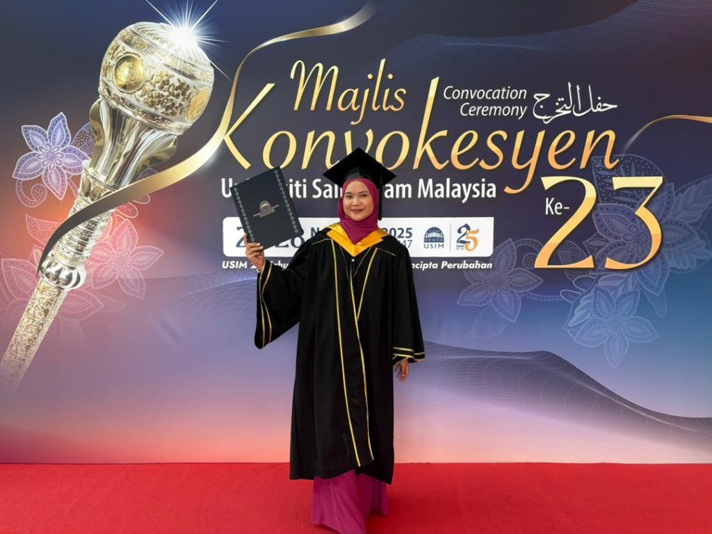 NILAI — Seorang graduan Universiti Sains Islam Malaysia (USIM), Nurul Khairul Ellysa Khairul Azman, 24, menamatkan pengajian Diploma Amalan Kehakiman dan Guaman Syarie (DIJAP) dengan penuh ketabahan apabila kehilangan ayah tercinta hanya empat minggu sebelum peperiksaan akhir.