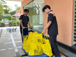“Tenaga kerja pelajar USIM hari ini amat membantu melancarkan proses penyediaan barangan sebelum diagihkan. Kerja pembungkusan yang memerlukan ketelitian dan kecekapan dapat diselesaikan dalam tempoh yang singkat,” jelasnya.