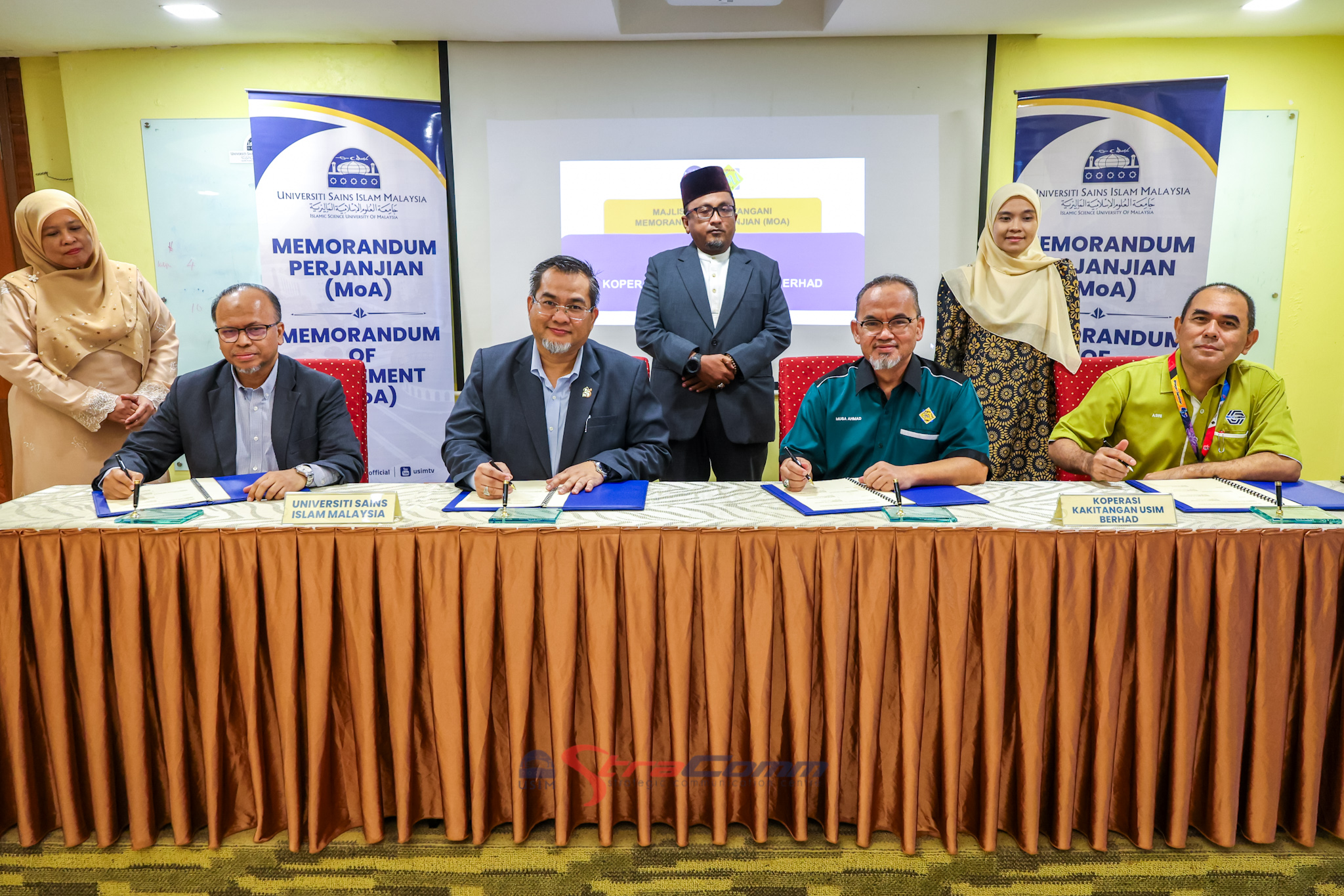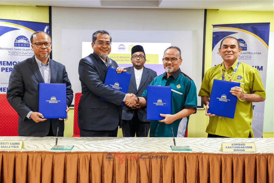 NILAI – Universiti Sains Islam Malaysia (USIM) hari ini memeterai perjanjian kerjasama strategik dengan Koperasi Kakitangan Universiti Sains Islam Malaysia Berhad (KOOP USIM) dalam satu majlis yang berlangsung di Eksekutif Lounge Canselori USIM pada 20 April 2026 baru-baru ini.